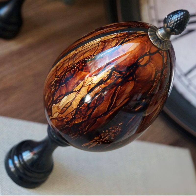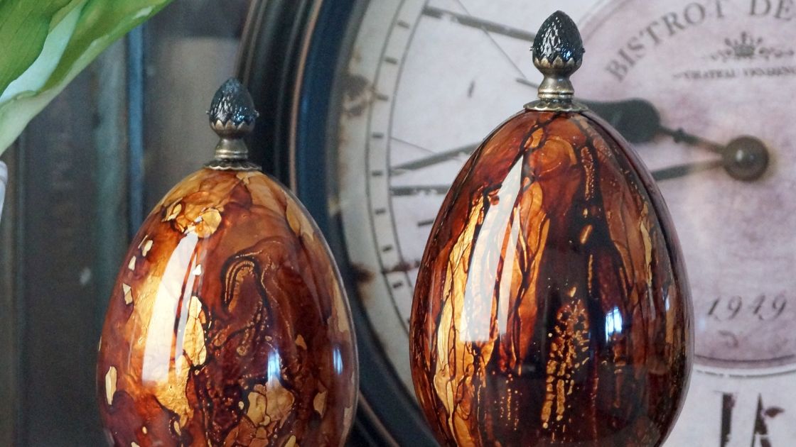 Niepozorna z daleka, hipnotyzująca z bliska – pisanka z efektem politury to projekt, który łączy prostotę formy z niesamowitym efektem wizualnym. Dzięki technice mixed media stworzysz dekorację, która wygląda jak politurowane drewno – z głębokim kolorem, wysokim połyskiem i delikatnymi złoceniami. To projekt pełen magii, a niektóre etapy pracy zaskoczą Cię swoim efektem.