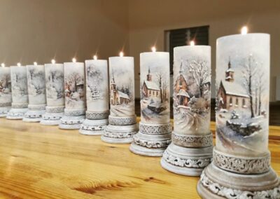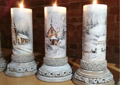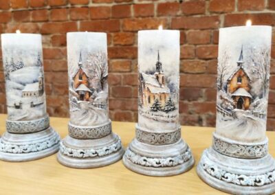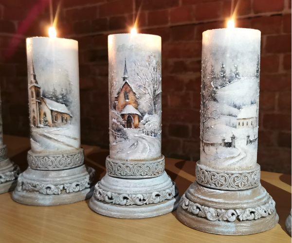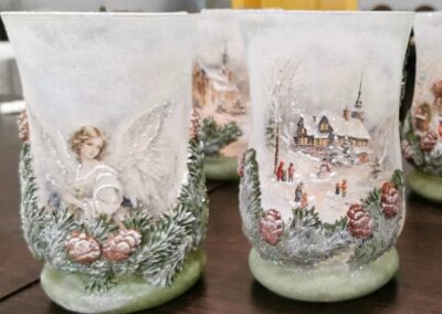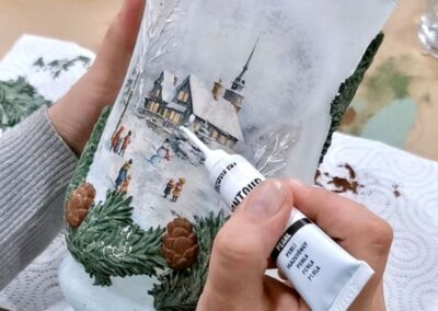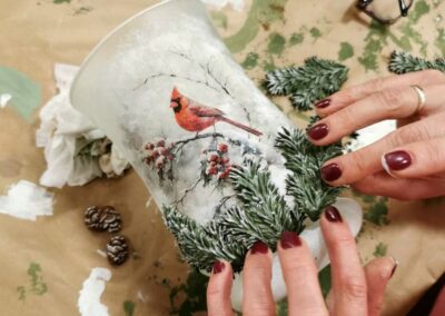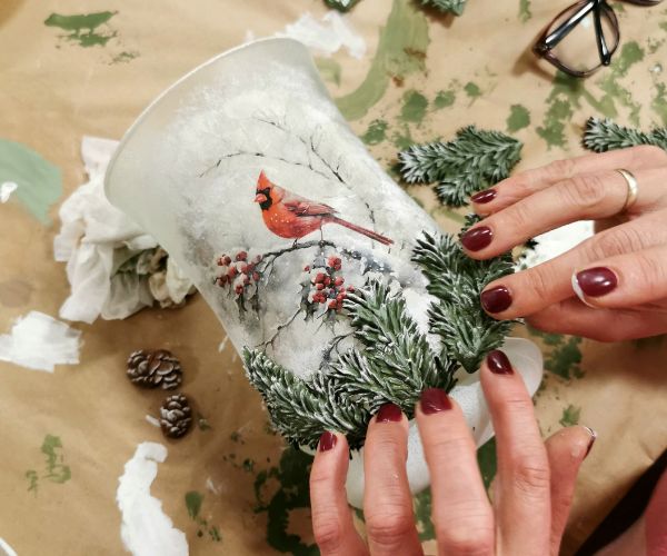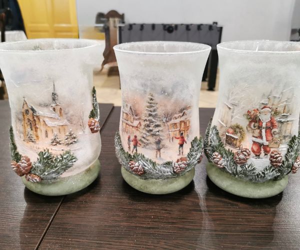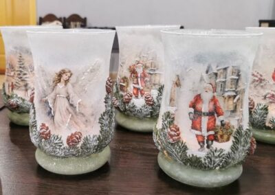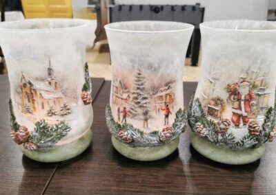 Na tych wyjątkowych warsztatach wykonamy duże szklane lampiony na świecę, dekorowane techniką decoupage z elementami 3D. Użyjemy pasty śniegowej, brokatu i zimowych motywów, by stworzyć nastrojowe, pełne blasku dekoracje.