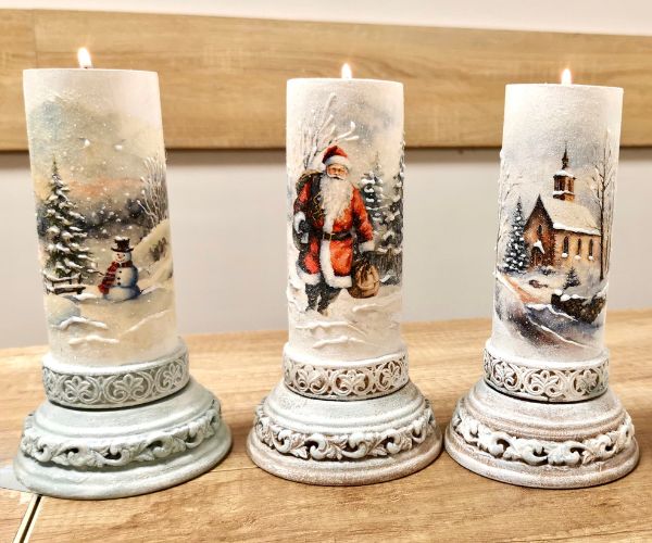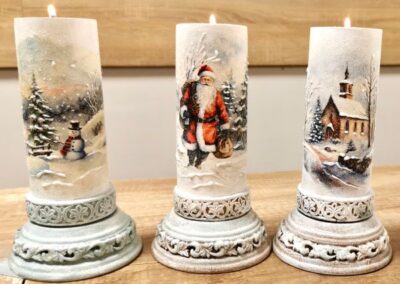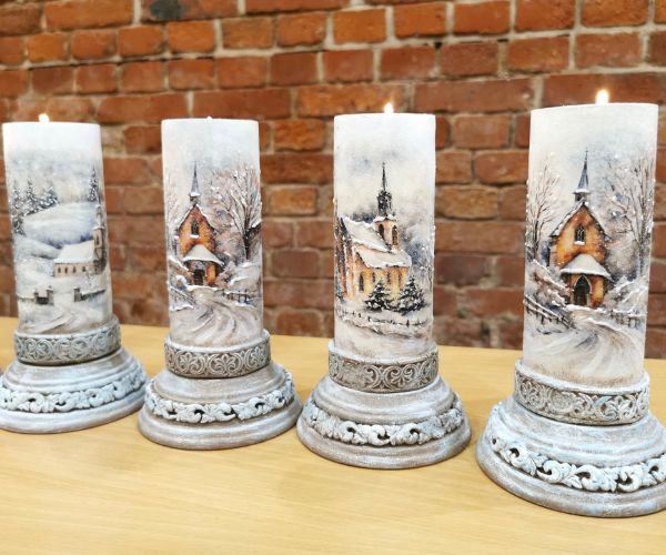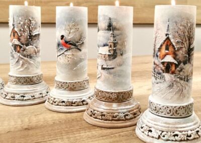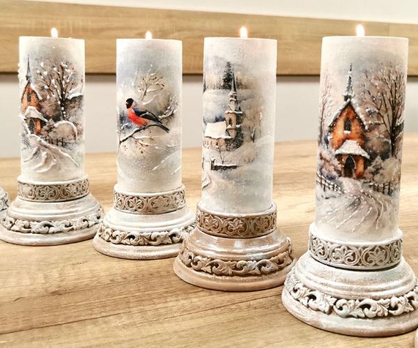 Podczas tych warsztatów stworzymy drewniane świeczki z otworem na tealight, osadzone na ceramicznej podstawie w stylu shabby chic. Projekt ozdobimy techniką decoupage z elementami 3D, tworząc wyjątkową świąteczną aranżację pełną uroku, faktur i subtelnych detali.