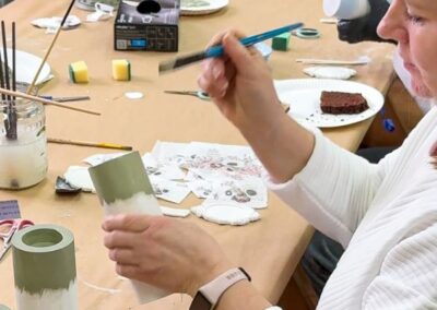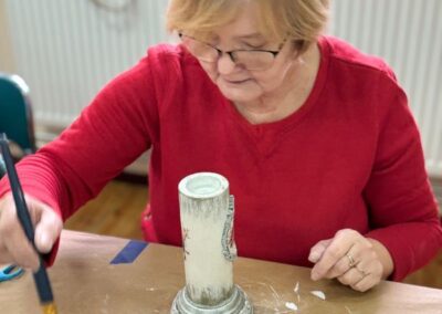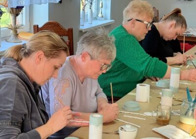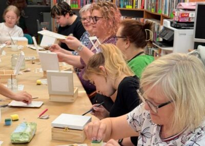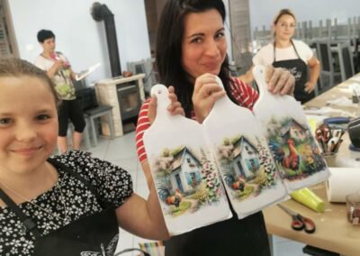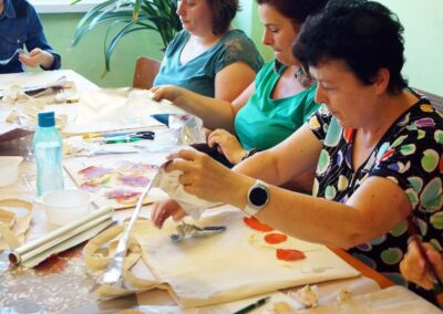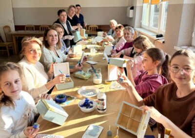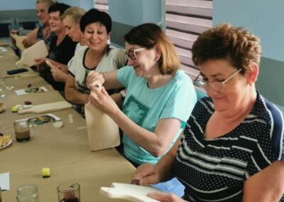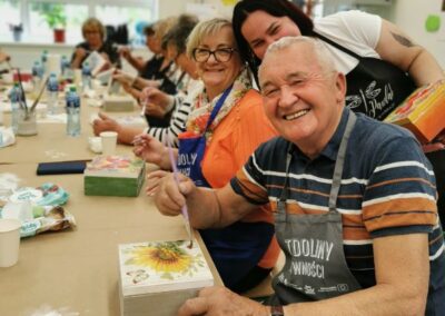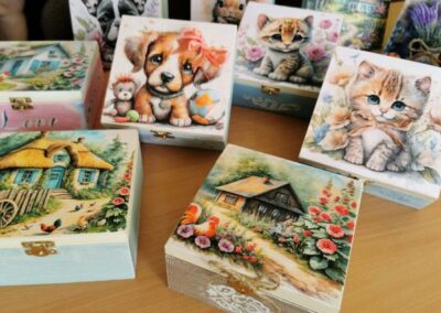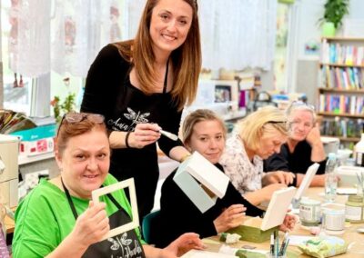 Każde spotkanie to okazja do zdobycia nowych umiejętności, poznania technik takich jak decoupage, malowanie, praca z elementami 3D czy mixed media – i to w atmosferze pełnej życzliwości, humoru i integracji.