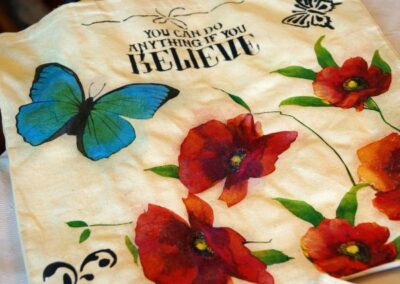 Podczas tych warsztatów uczestnicy stworzą unikatowe torby bawełniane, ozdobione techniką decoupage oraz za pomocą szablonów malarskich.