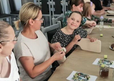 Dostosowuję poziom trudności do wieku i możliwości grupy – tak, by tworzenie było przyjemnością, a nie wyzwaniem. Moje warsztaty to nie tylko dekoracje – to czas relaksu, kontaktu z drugim człowiekiem i radości tworzenia, która zostaje na długo.