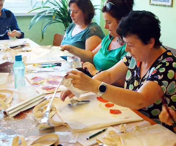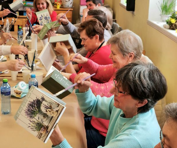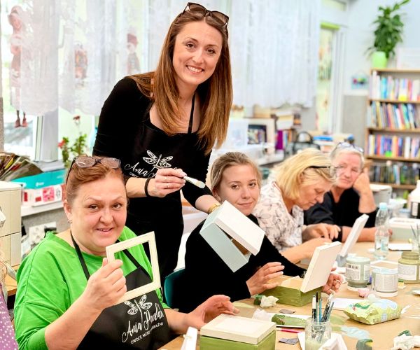 Każde spotkanie to okazja do zdobycia nowych umiejętności, poznania technik takich jak decoupage, malowanie, praca z elementami 3D czy mixed media – i to w atmosferze pełnej życzliwości, humoru i integracji.