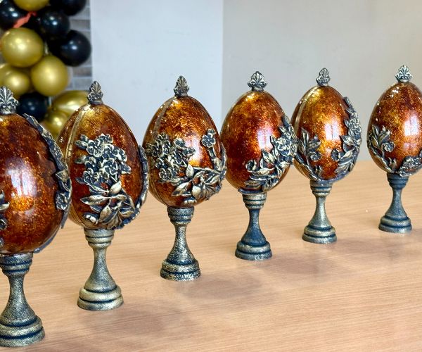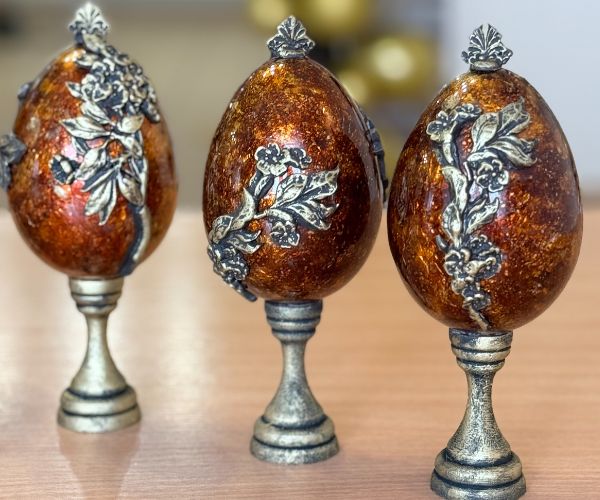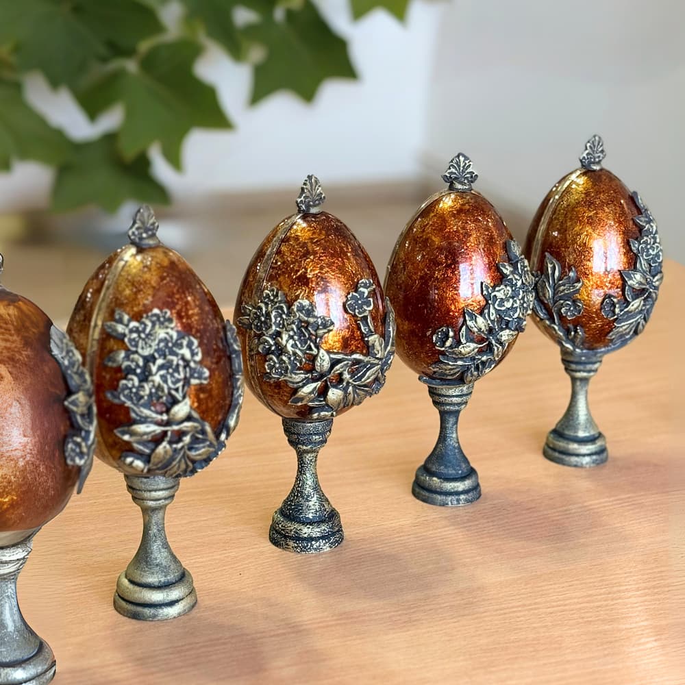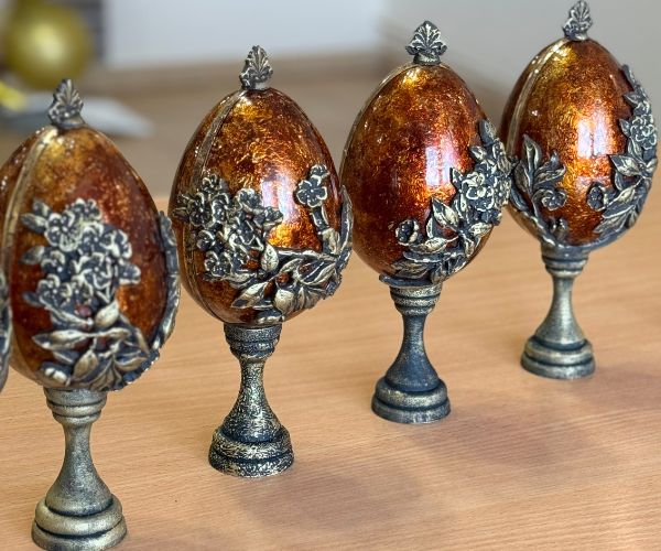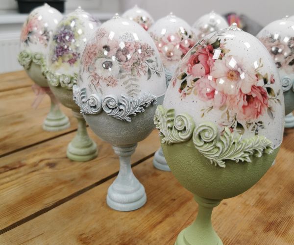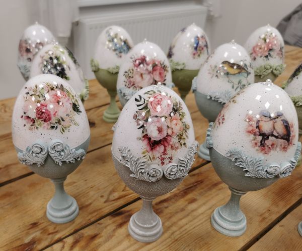 Gotowe prace stanowią efektowną ozdobę wielkanocną – idealną do wnętrz w eleganckim, stylowym klimacie.