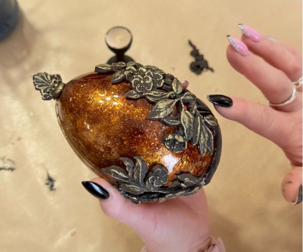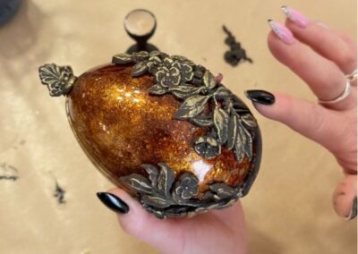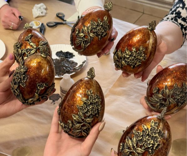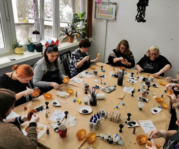 Uczestnicy stworzą imitację bursztynu, która łudząco przypomina naturalny materiał – z charakterystycznym kolorem, przejrzystością i głębią. Gotowe dekoracje będą efektowną i elegancką ozdobą wielkanocną, wyróżniającą się unikalnym wykończeniem.