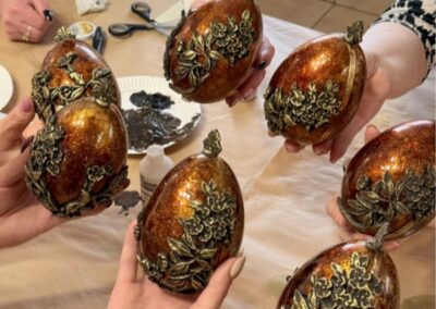 Na warsztatach wielkanocnych stworzysz ze mną eleganckie i dopracowane dekoracje, które zachwycą stylem i jakością wykonania. To idealna okazja, by nauczyć się efektownych technik rękodzielniczych i stworzyć ozdoby, które pięknie udekorują Twój dom lub staną się wyjątkowym prezentem. Każda praca będzie trwała, unikatowa i w pełni handmade – gotowa, by cieszyć oko przez długie lata.
